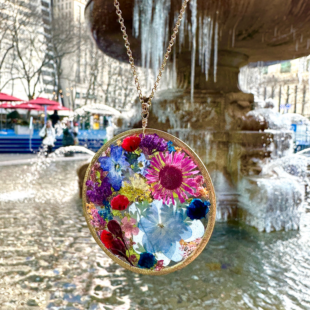 Each pendant holds real wildflowers, carefully hand-pressed and preserved in crystal-clear resin, like a sunlit memory from a meadow walk. ๐ผ๐ธ