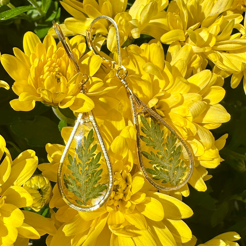 Crafted with care, each earring features a graceful fern design in vibrant green tones that catch the light and turn heads. Whether you’re dressing up for a special occasion or adding a fresh accent to your casual outfit, these earrings offer a unique, earthy charm that never goes out of style.