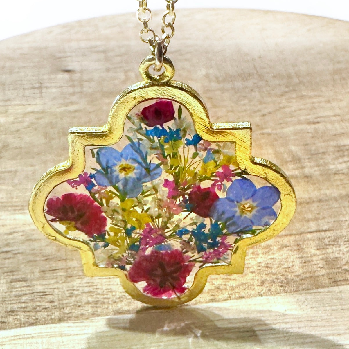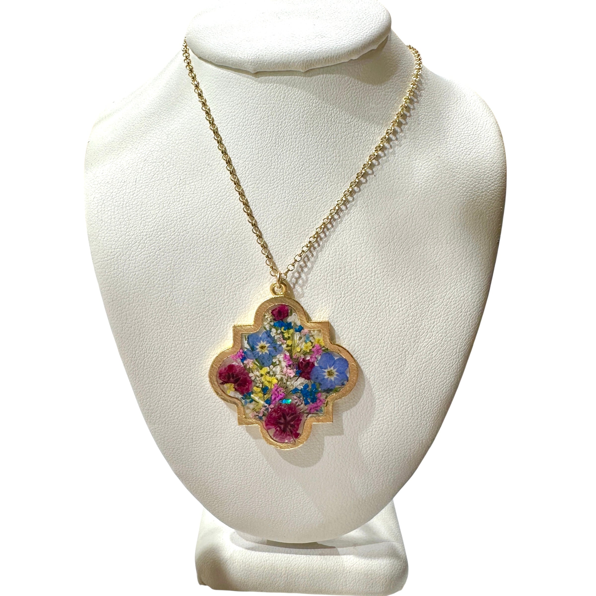 🪻Regal purple garden necklace designed with baby’s breath, queen anne’s lace flowers and green ferns. The flowers and ferns are pressed, dried and preserved in resin.