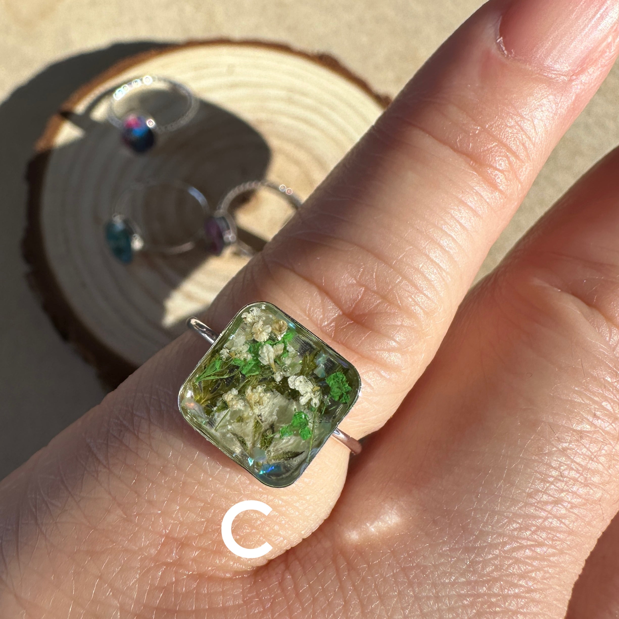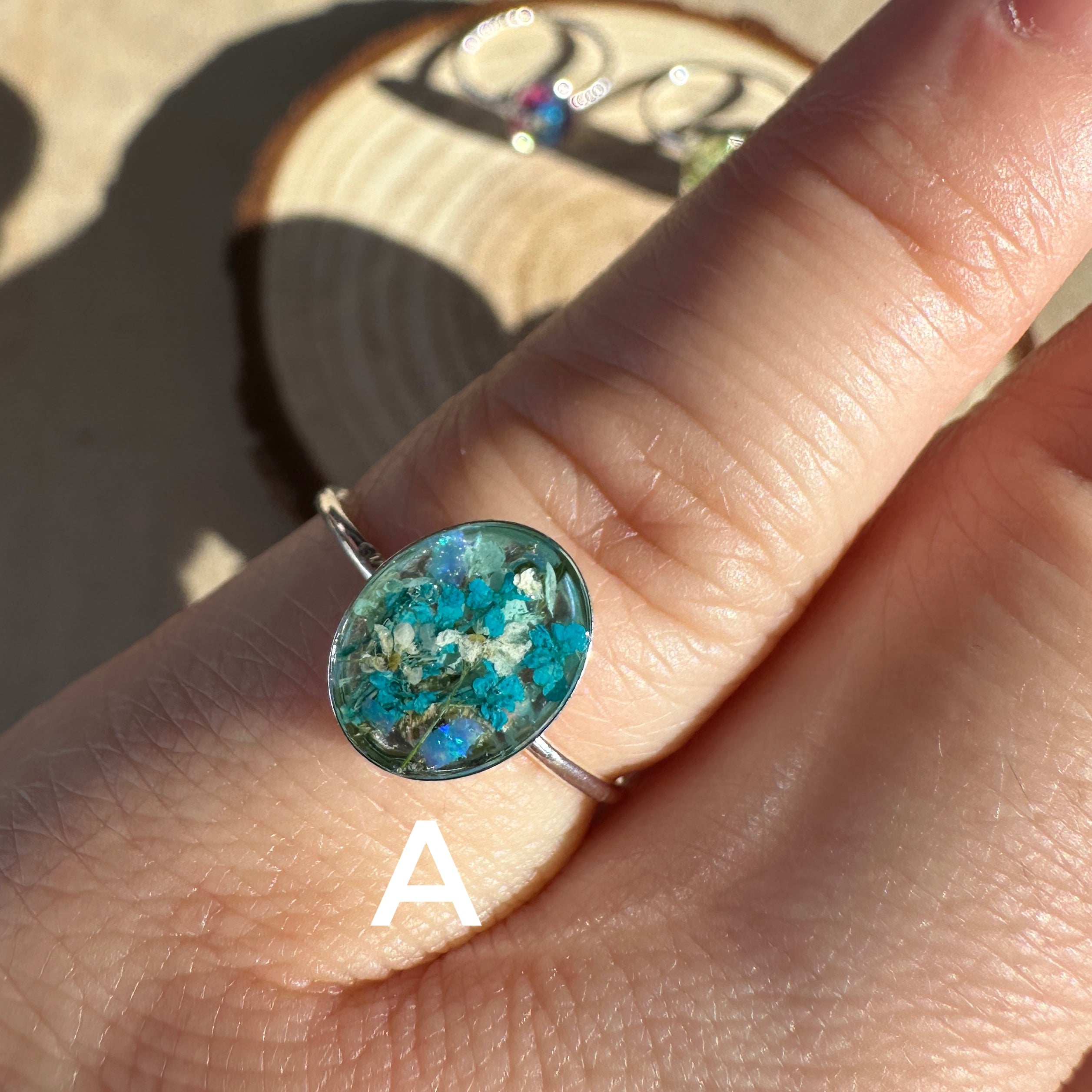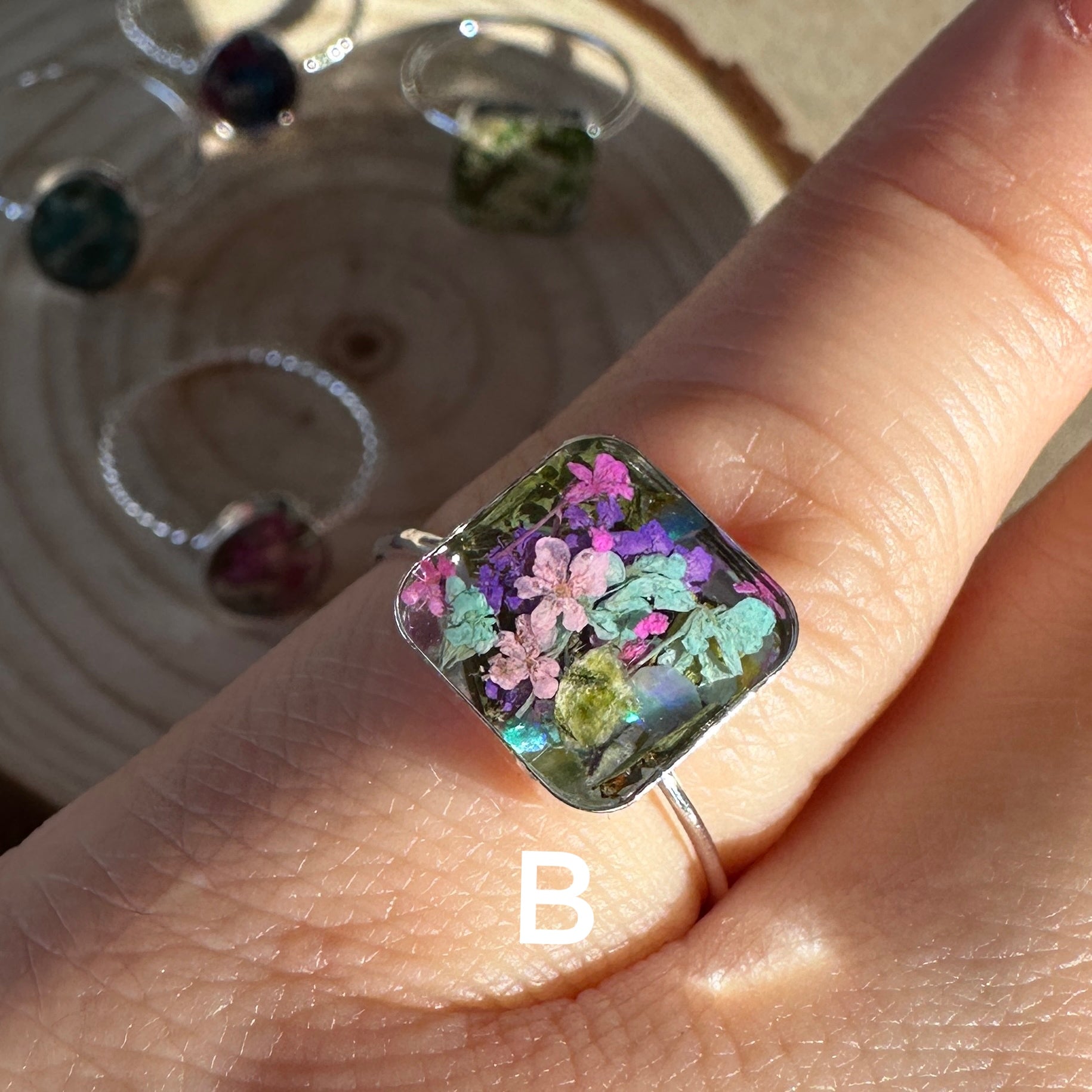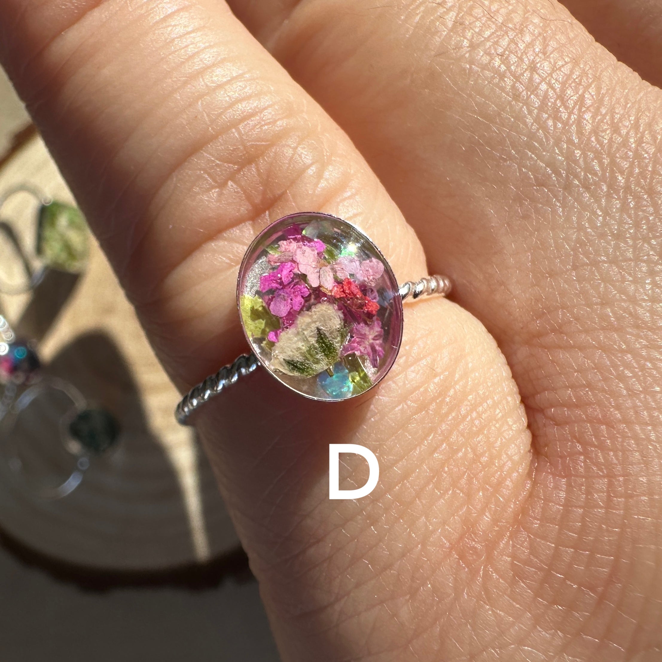 🌸One of a kind, handmade real flowers terrarium rings. Each ring contains a happy bouquet of natural tiny flowers, ferns and iridescent opal gemstones. These rings layer perfectly with your everyday rings and add color, nature and happiness to your wardrobe🌼