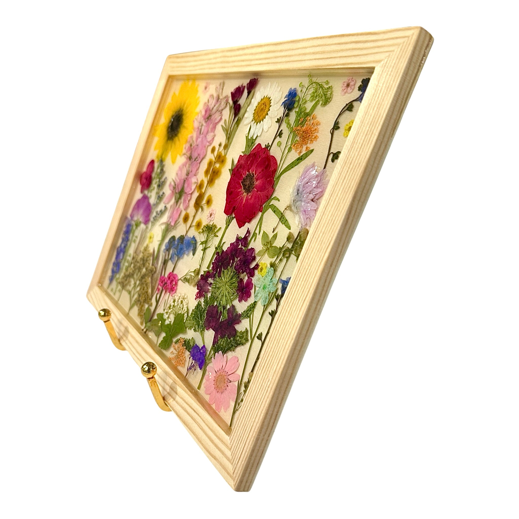 🌸Beautiful wall art collage of natural pressed flowers and ferns layered on solid pine wood and preserved in resin.  ...