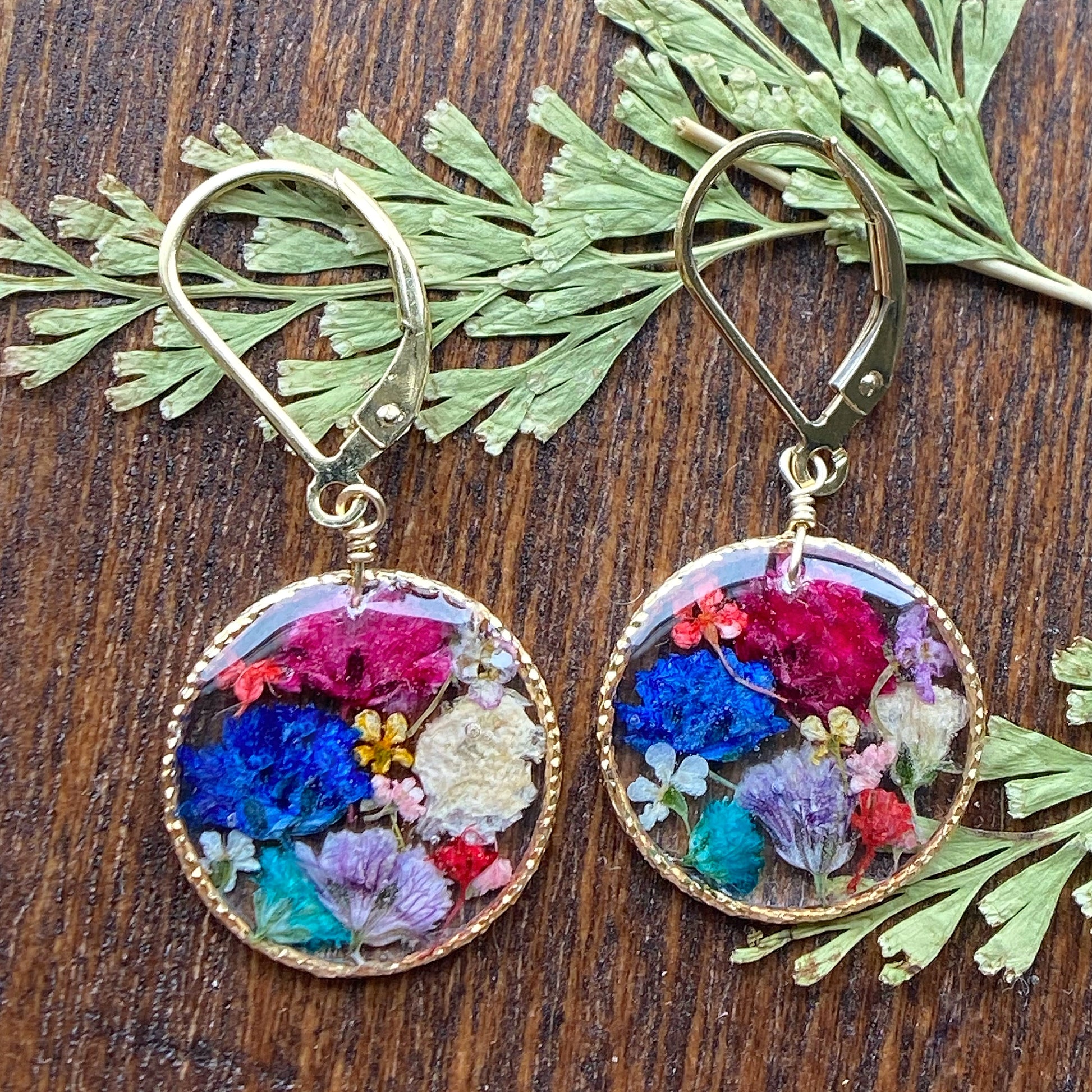 🌿One of a kind botanical garden earrings featuring natural wildflowers encased in resin and finished in 14kt gold-filled 🌿