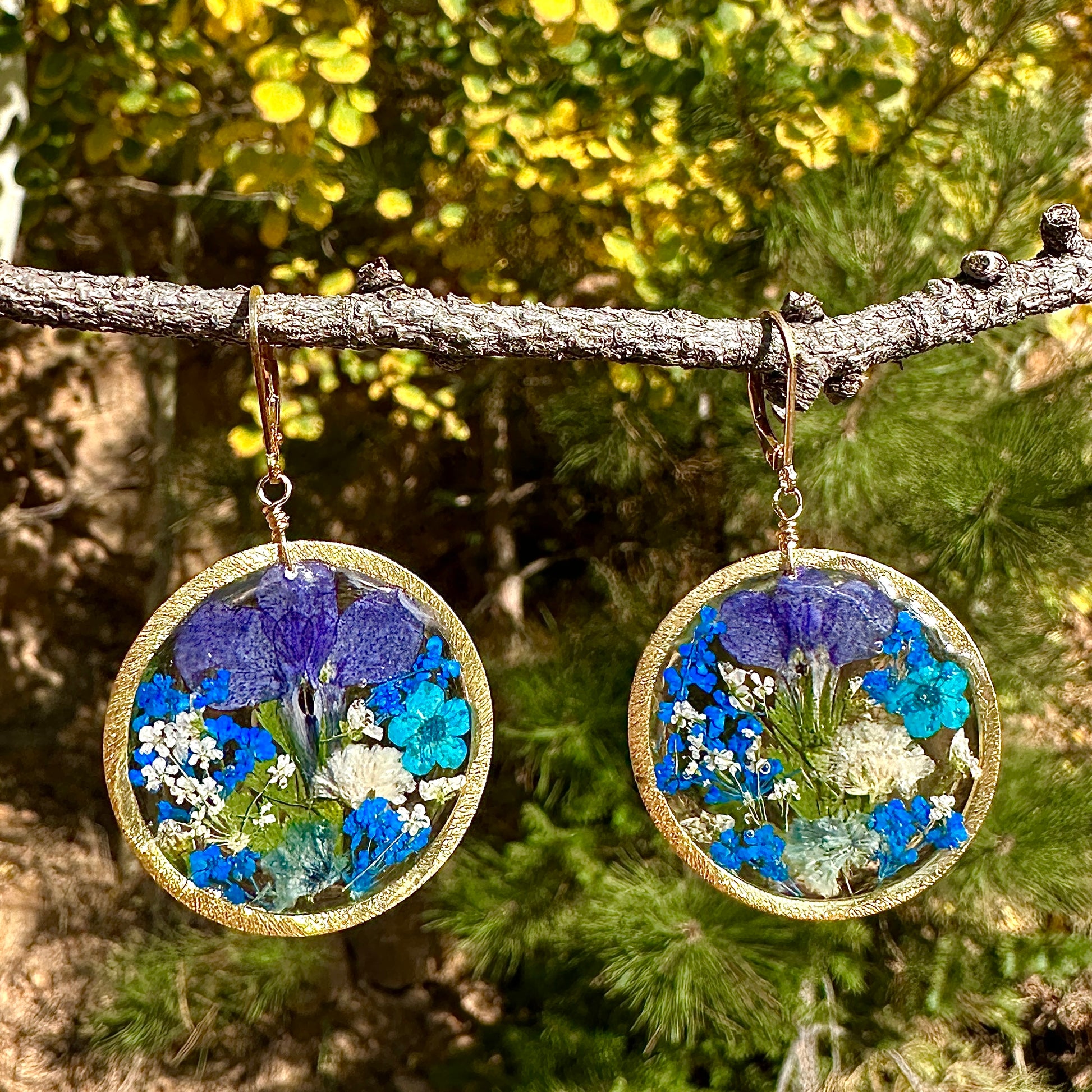 🌿One of a kind, botanical garden flower earrings with natural baby’s breath, queen anne’s lace, forget me not flowers and ferns. The flowers are pressed, dried and preserved in resin.