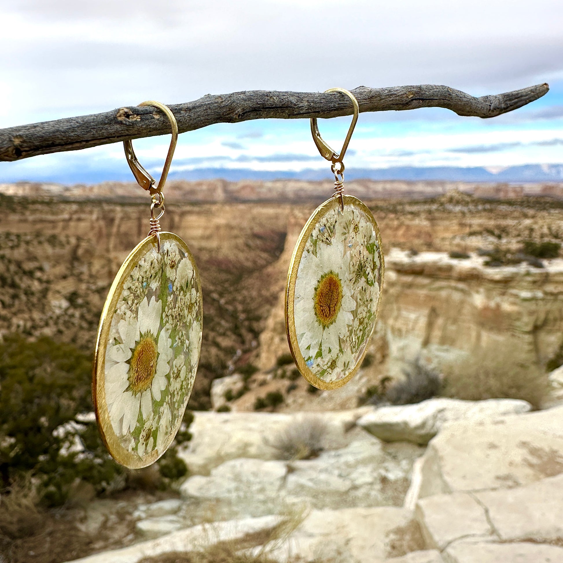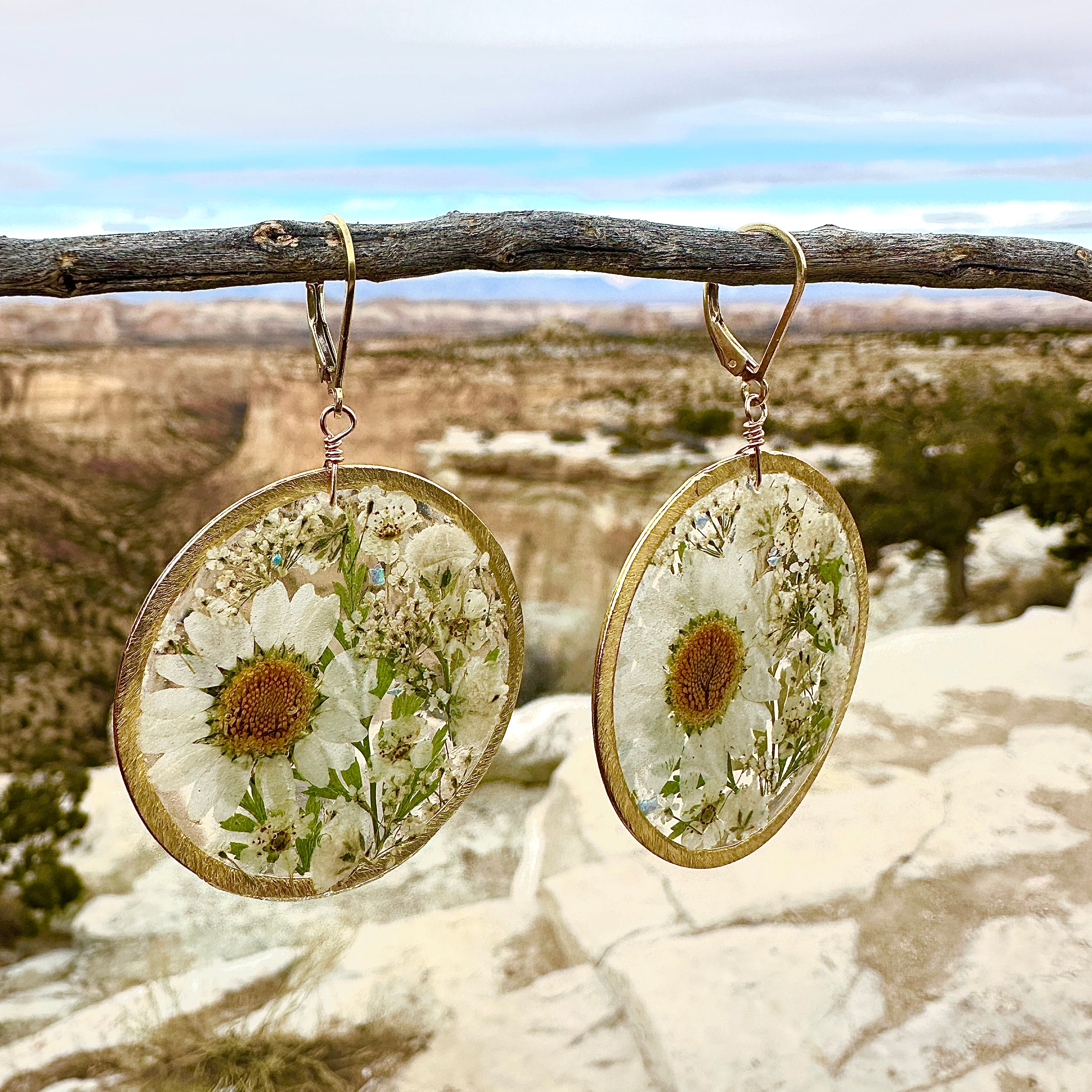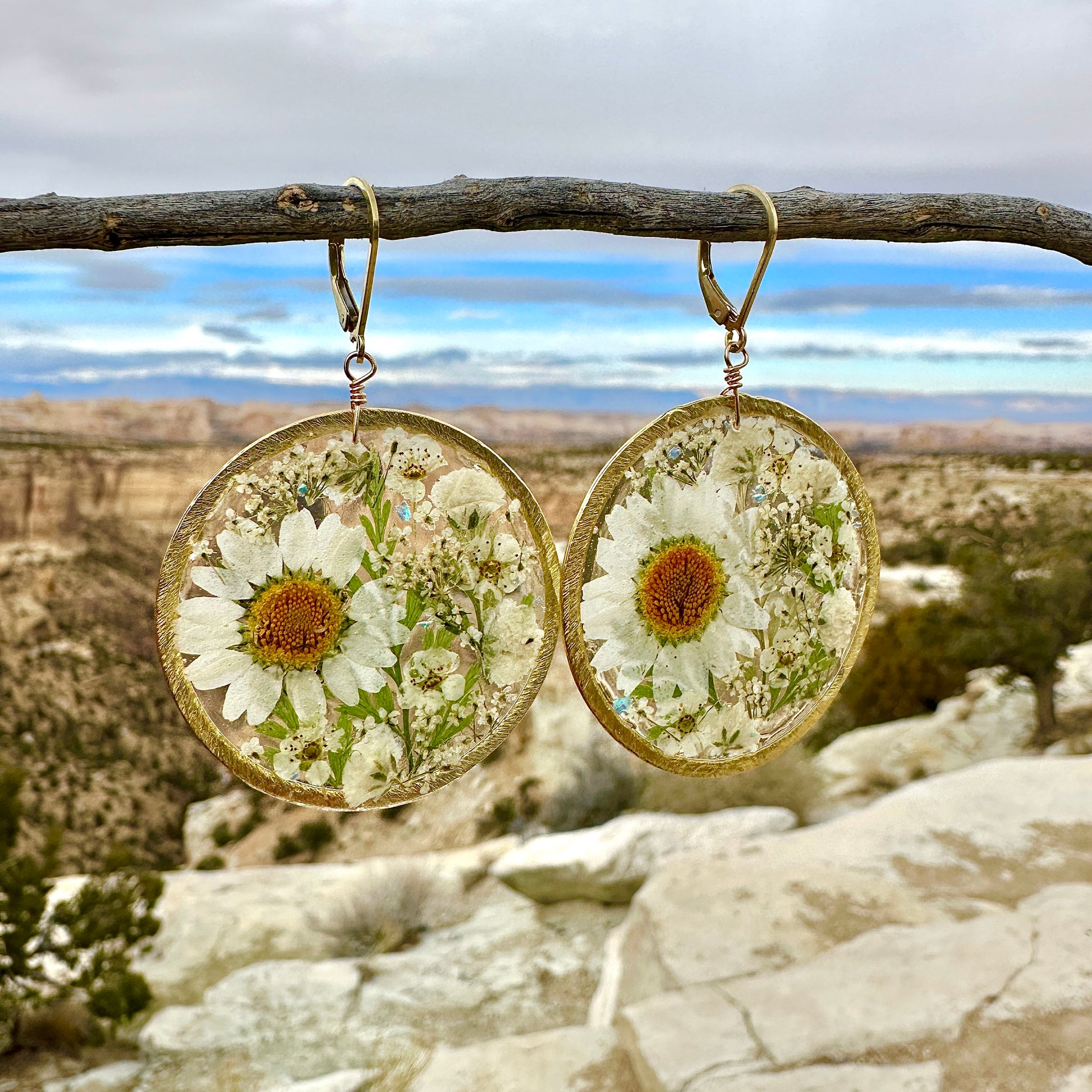 Celebrate nature with these handcrafted pressed wildflower circle earrings, made with real dried flowers preserved in...