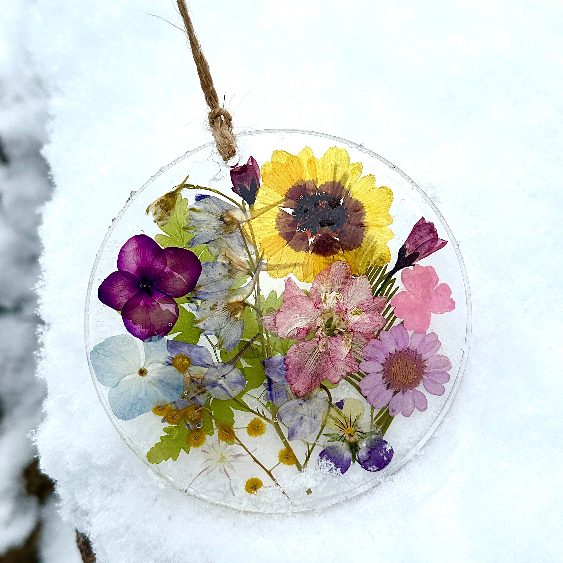 🌼Handmade botanical resin ornament designed with natural pressed flowers and ferns.