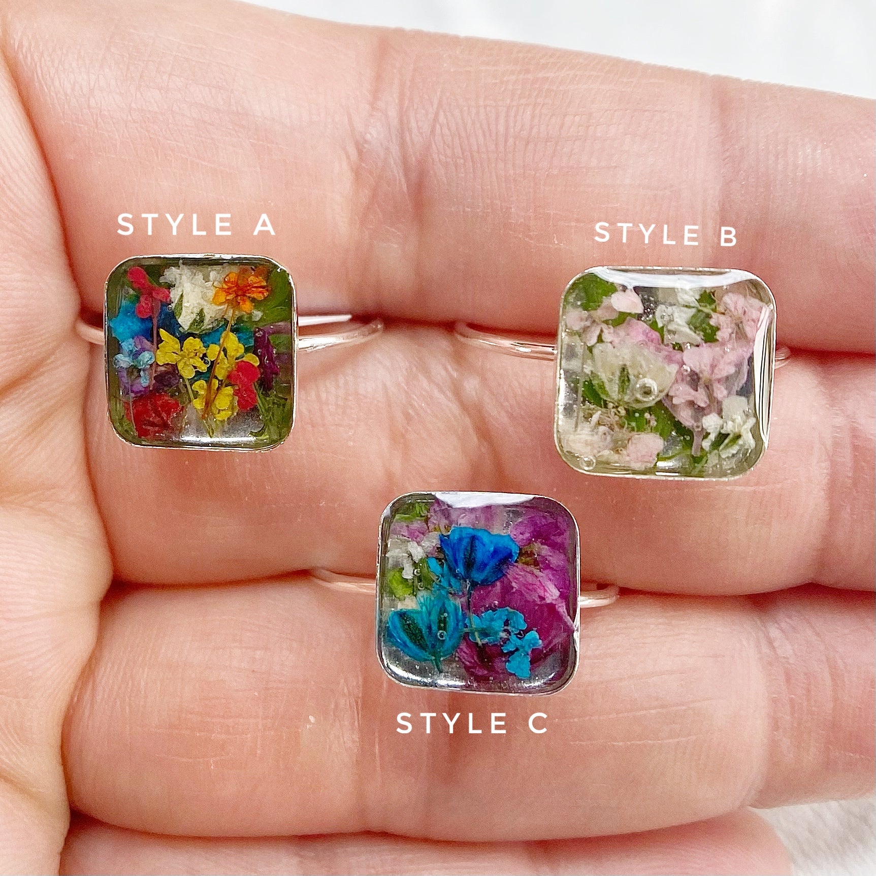 🌸One of a kind, handmade real flowers terrarium rings. Each ring contains a happy bouquet of natural tiny flowers. These rings layer perfectly with your everyday rings and add color, nature and happiness to your wardrobe🌼