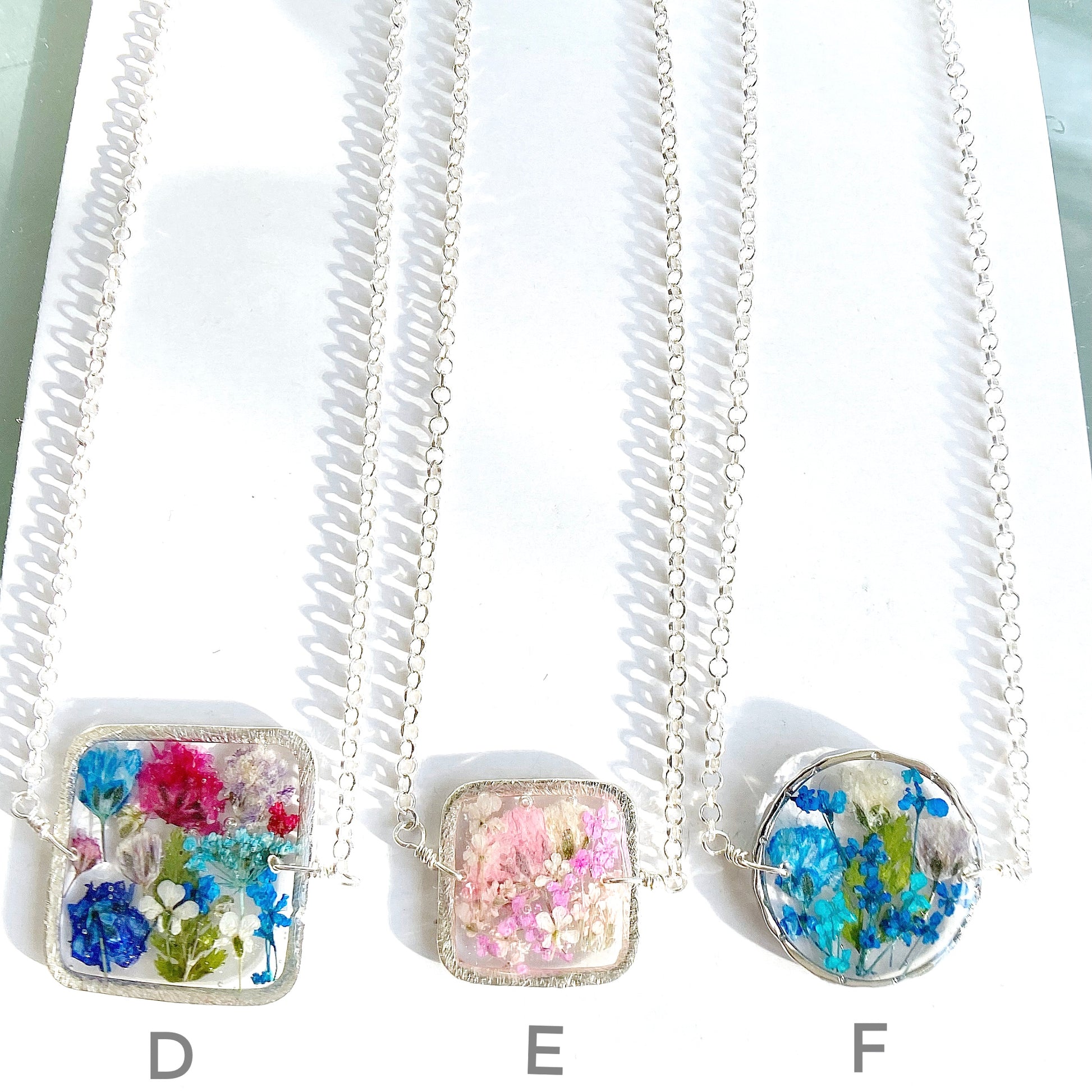 🌿 Style E - 15mm square pendant with pretty pink flowers paired with sterling silver. $45