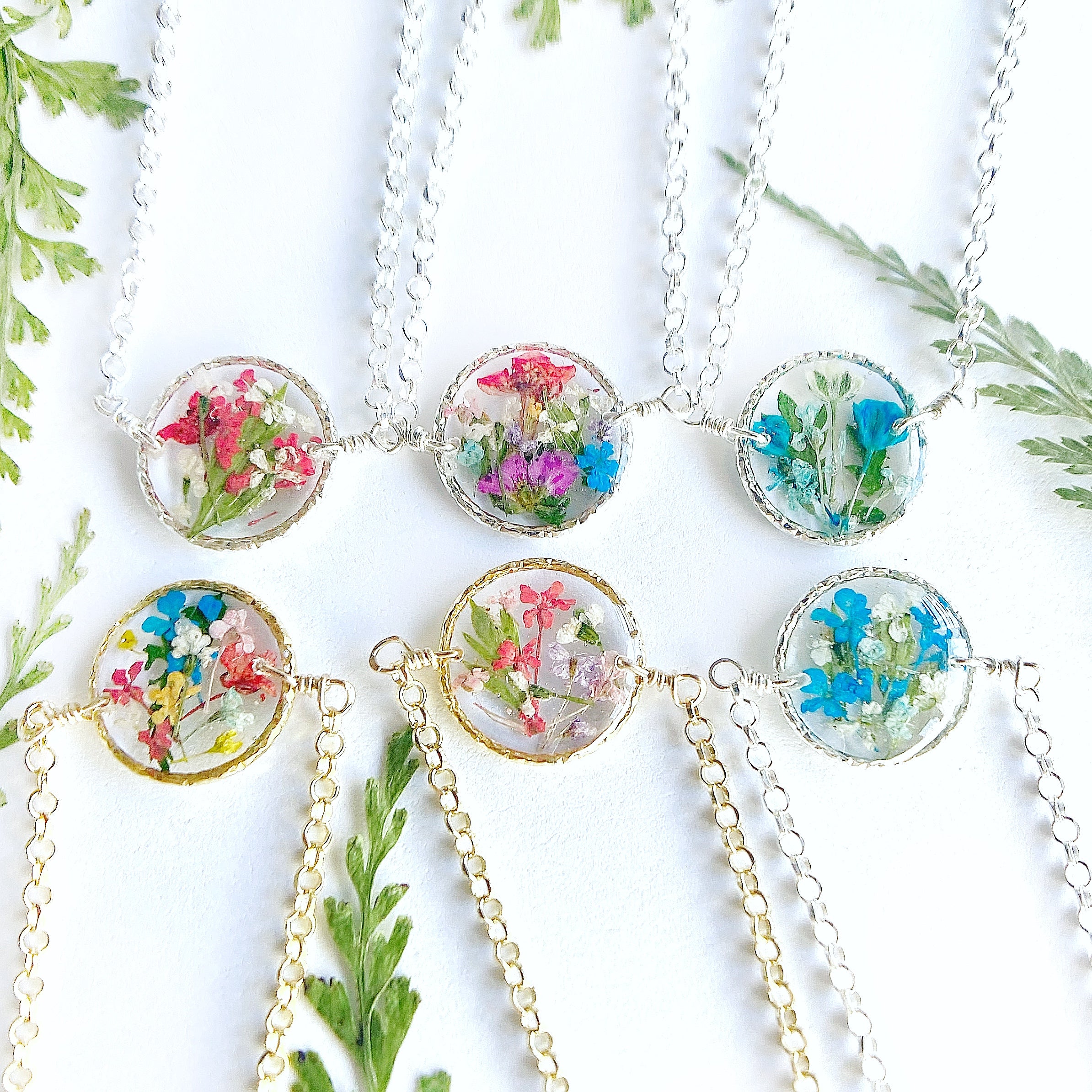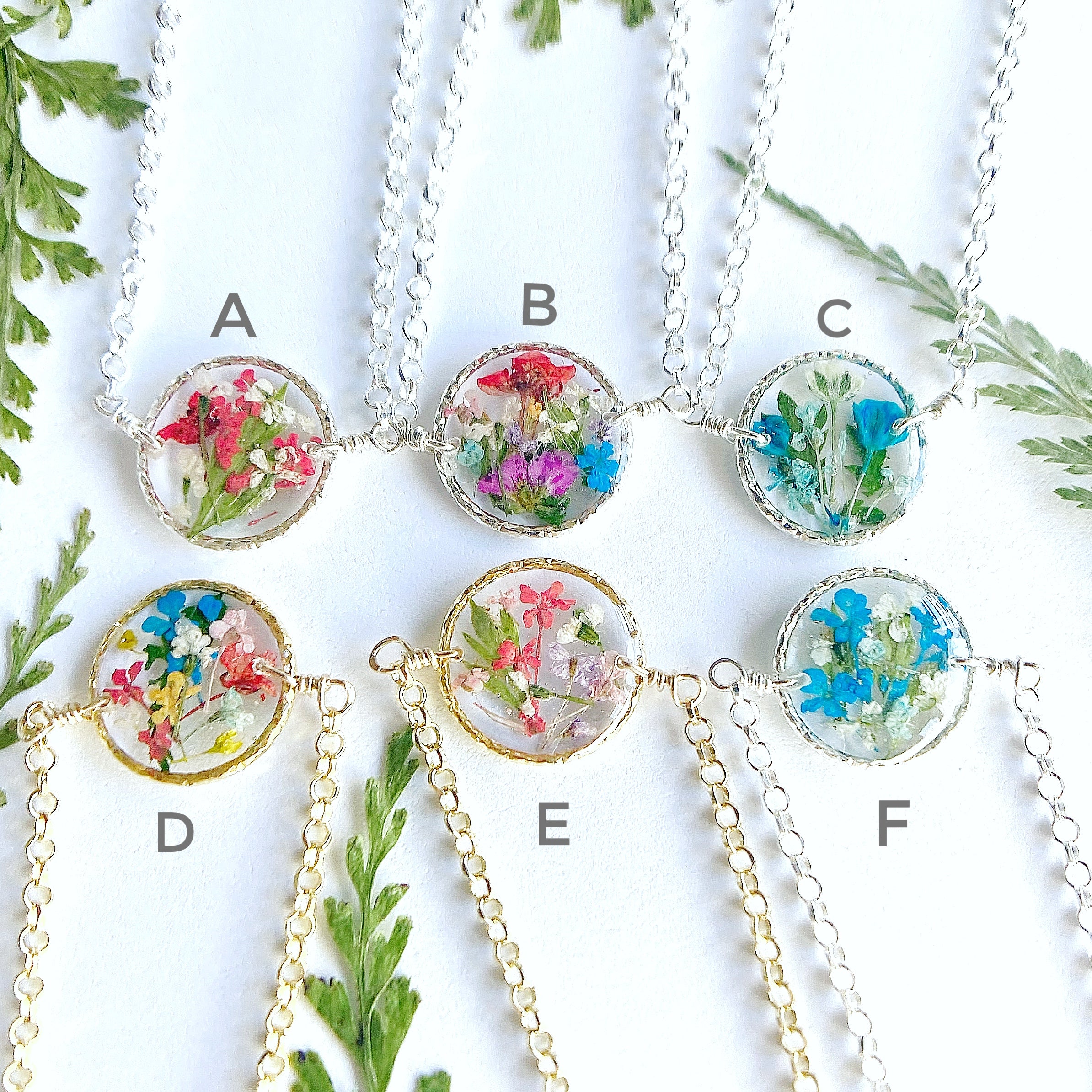 Style B - Multi-colored flowers with natural green ferns | Sterling Silver | adjustable 16โ - 18โ inch necklace | $40