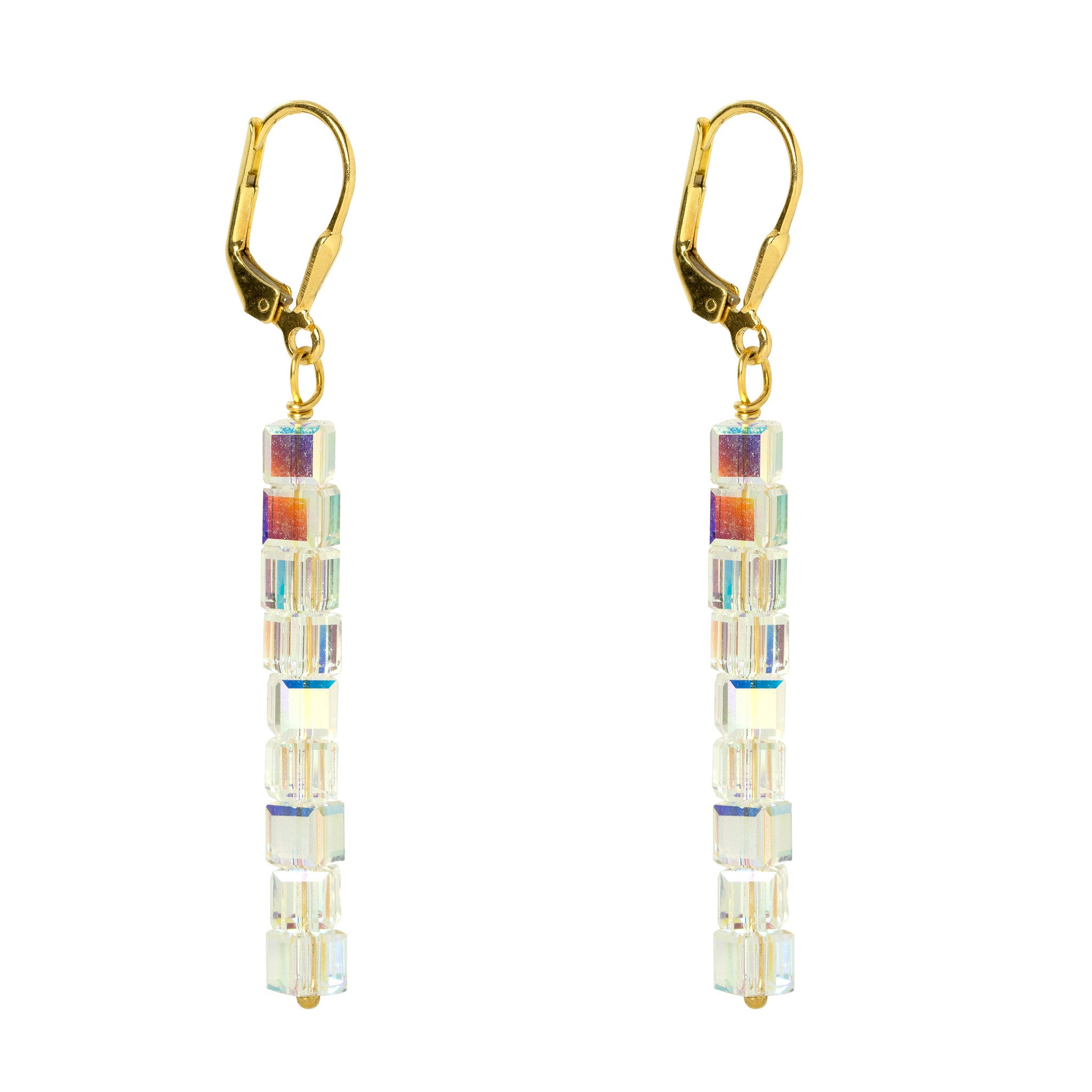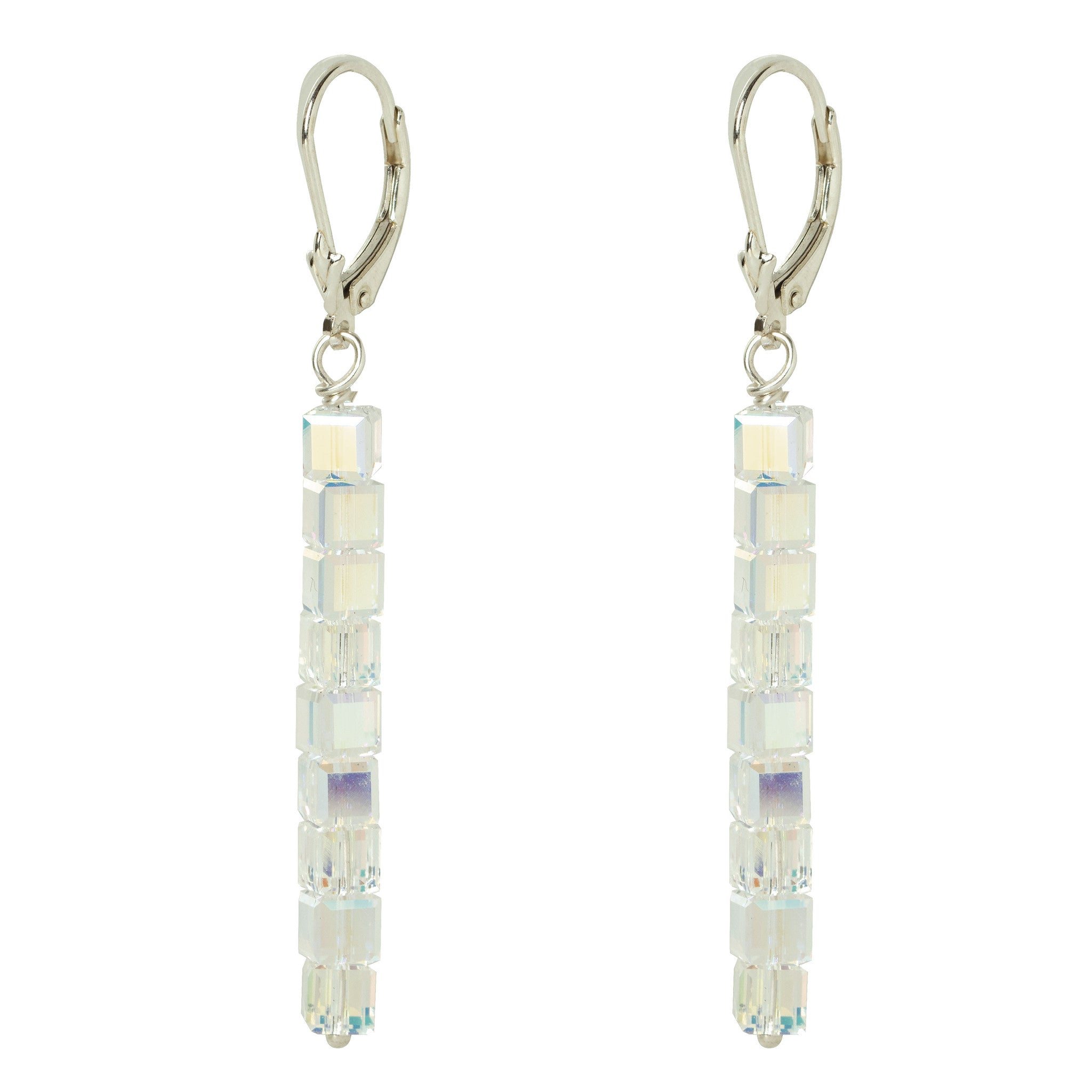 AB Clear Swarovski crystal line earring adorned with sterling silver or 14kt gold-filled. Length is about 2 inches. ...