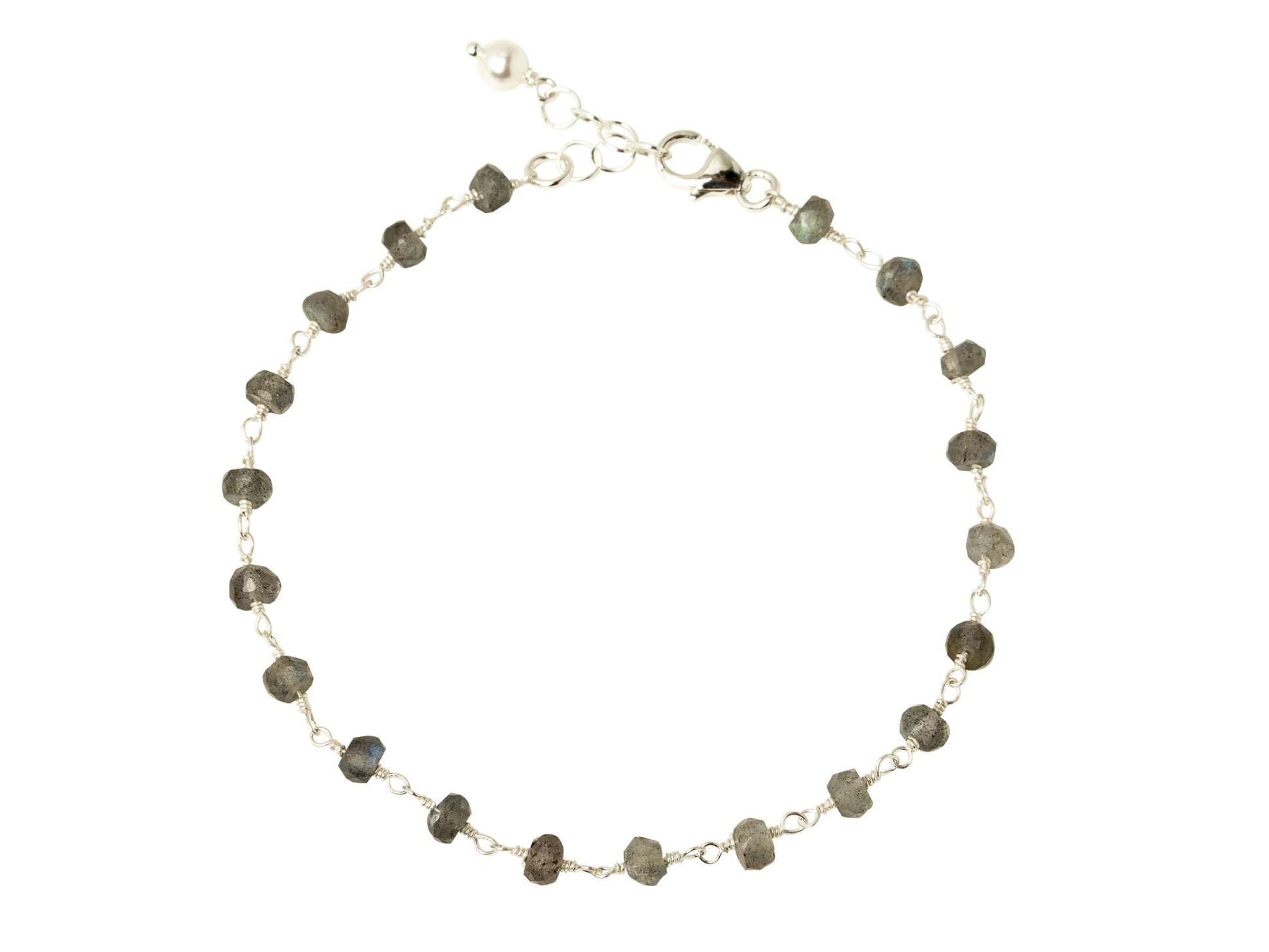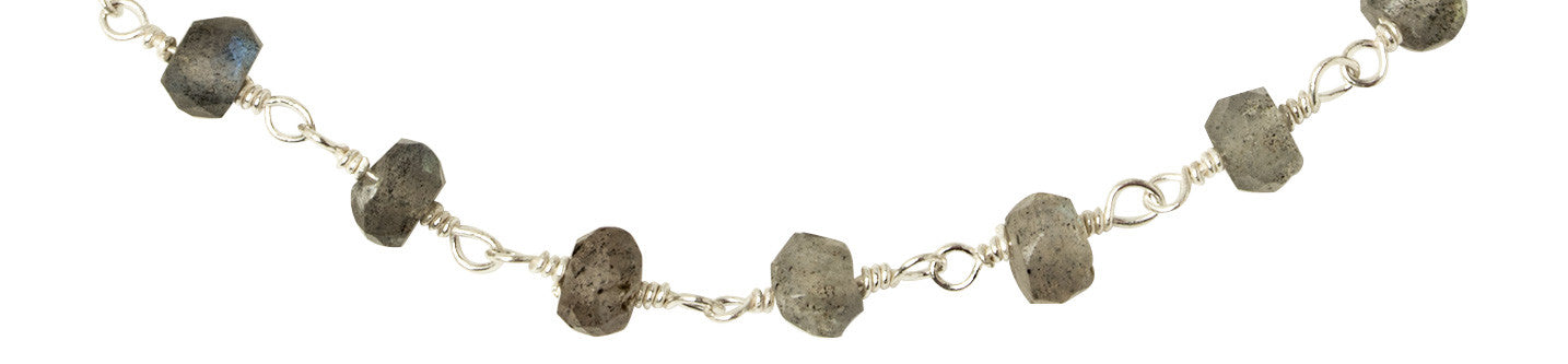 Beautiful, natural labradorite stones wire-wrapped together in this delicate, elegant bracelet. Available in 14kt gold filled or sterling silver. Adjustable 6.5 - 7.5 inches.