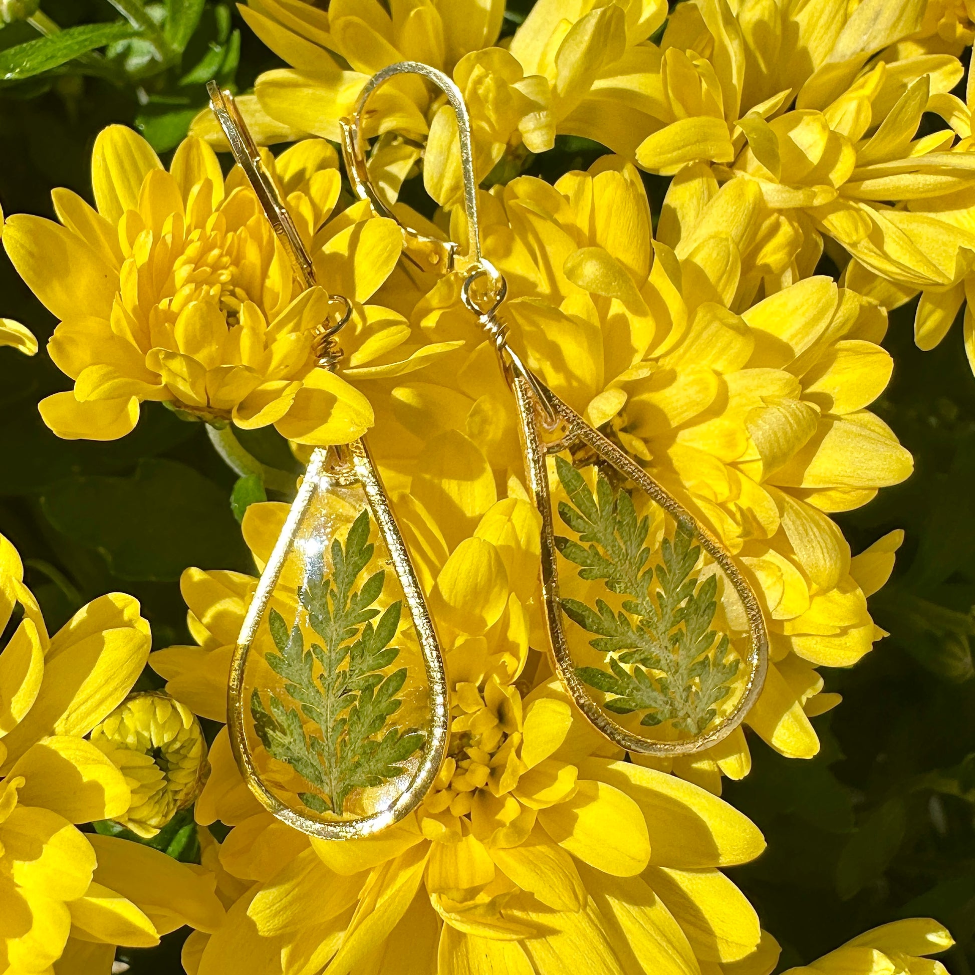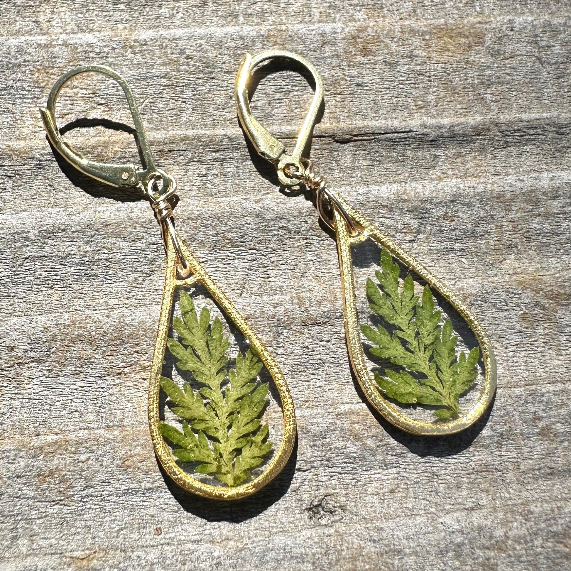 ✨ Material: 14kt gold filled, resin, natural ferns
