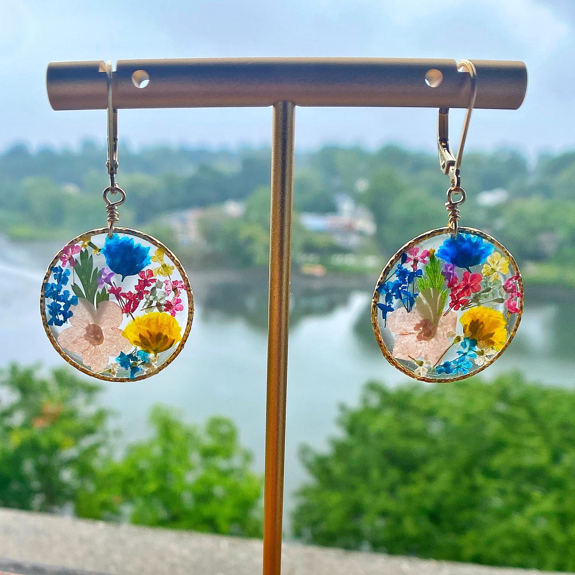 🌿Colorful rainbow botanical garden design created with natural flowers preserved in resin and finished in 14kt gold-filled