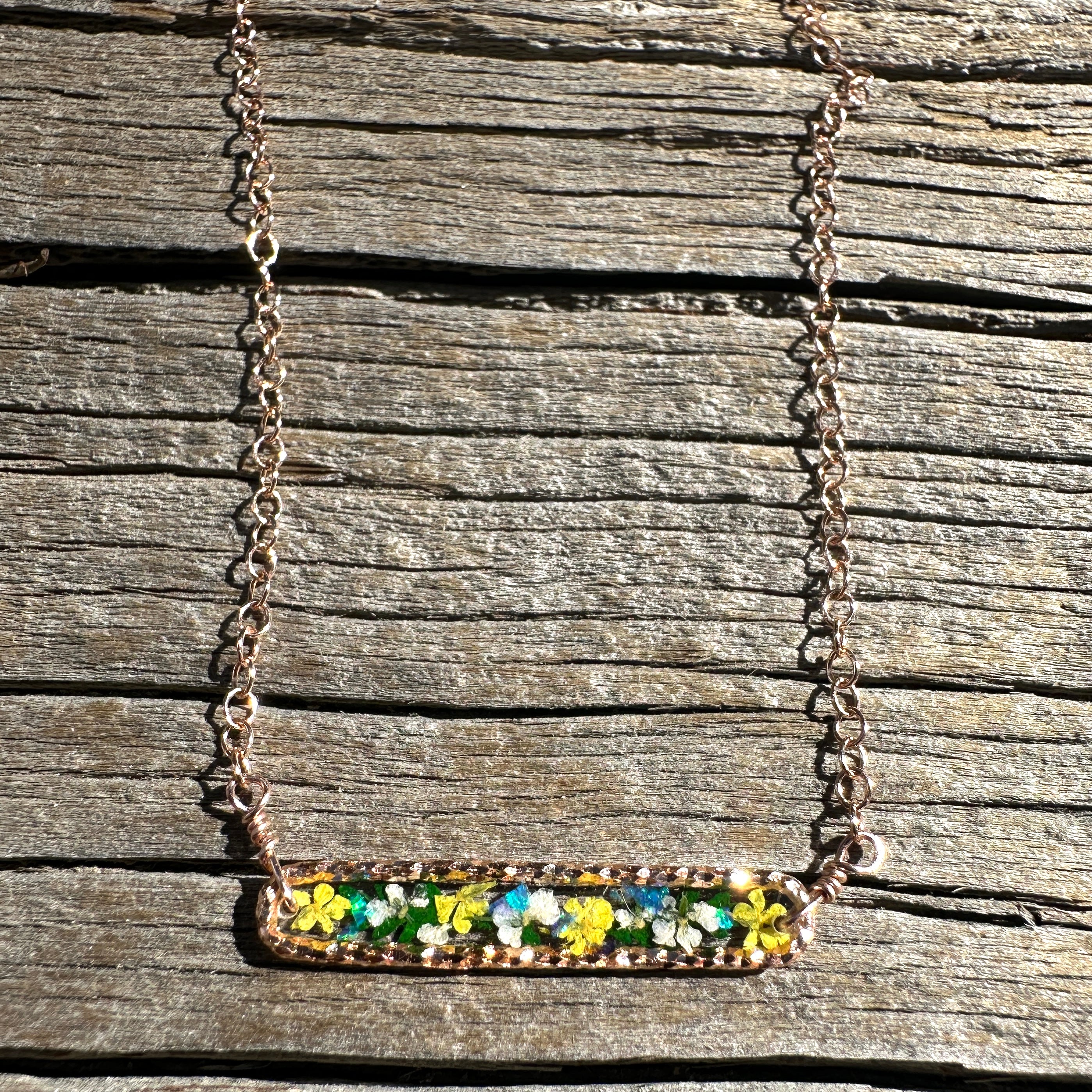 🌼 Real Pressed Flower Bar Necklace – BG 365