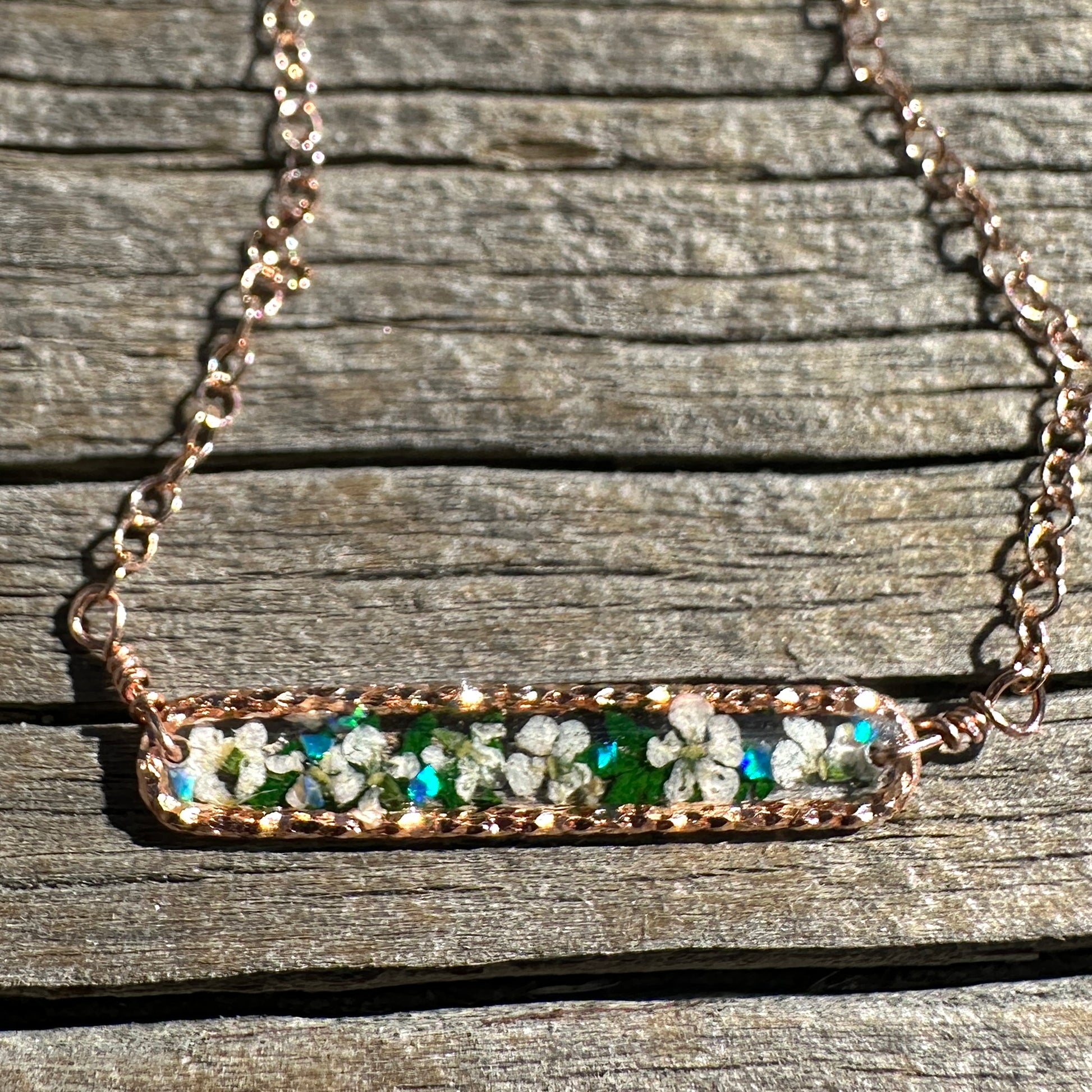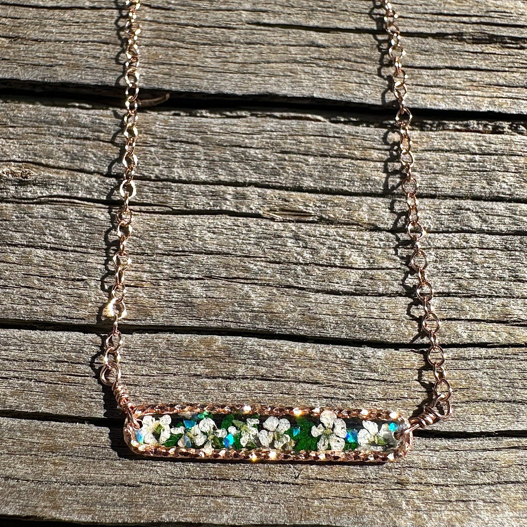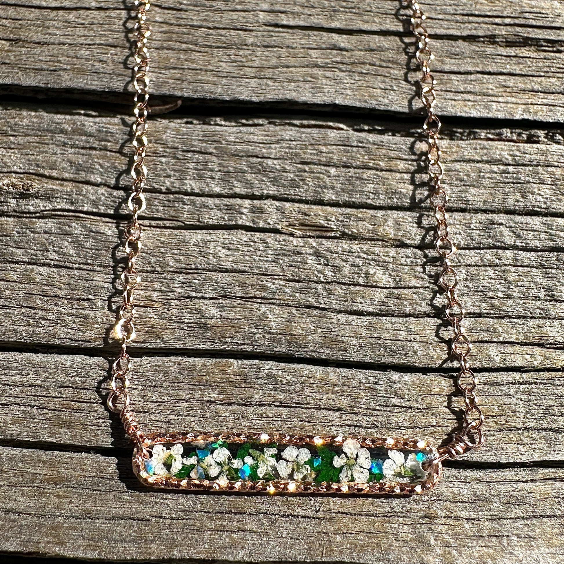 Each necklace captures a fleeting moment in nature—tiny blooms preserved forever. No two pieces are ever the same, making yours truly special.