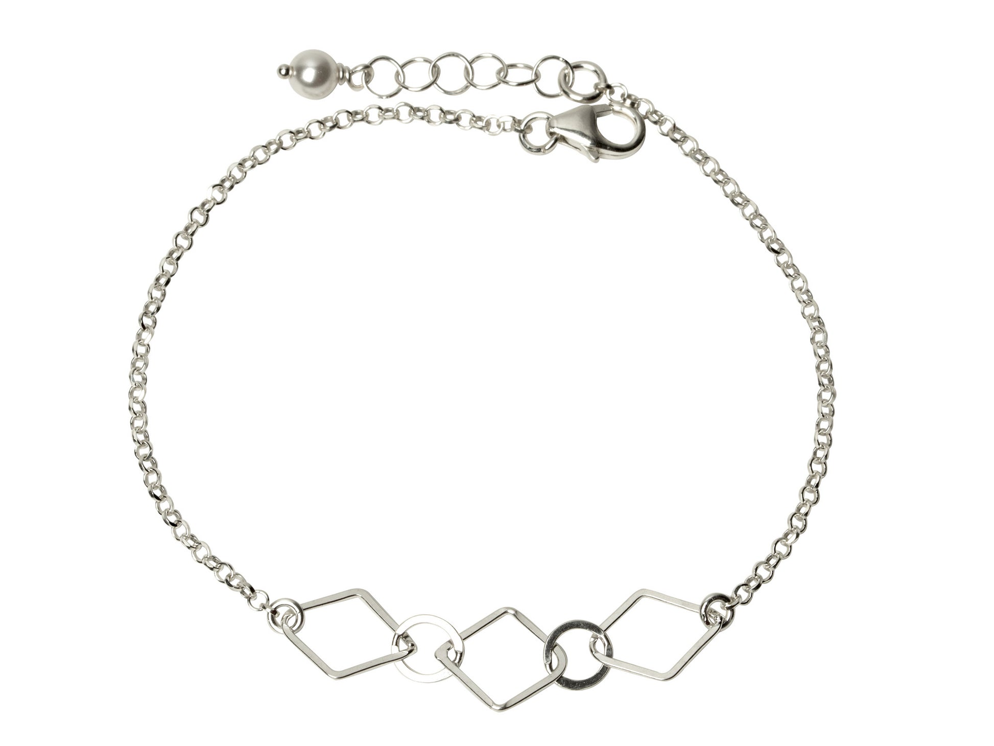 Modern sterling silver diamond chain bracelet with our signature Swarovski white pearl extender.  Perfect for layering!  Adjustable 6.5 - 7.5 inches.