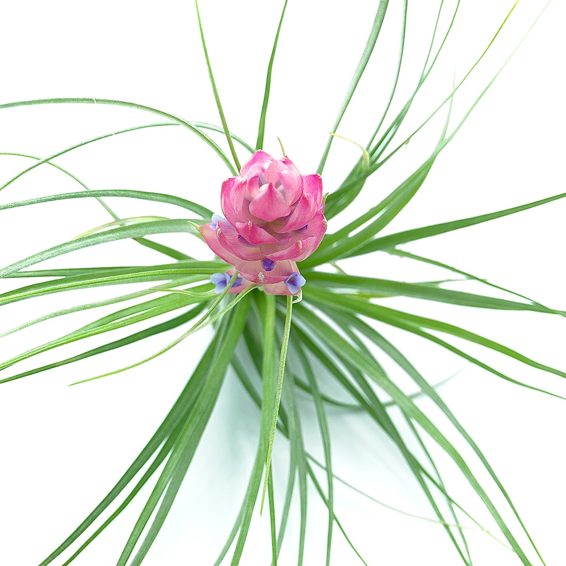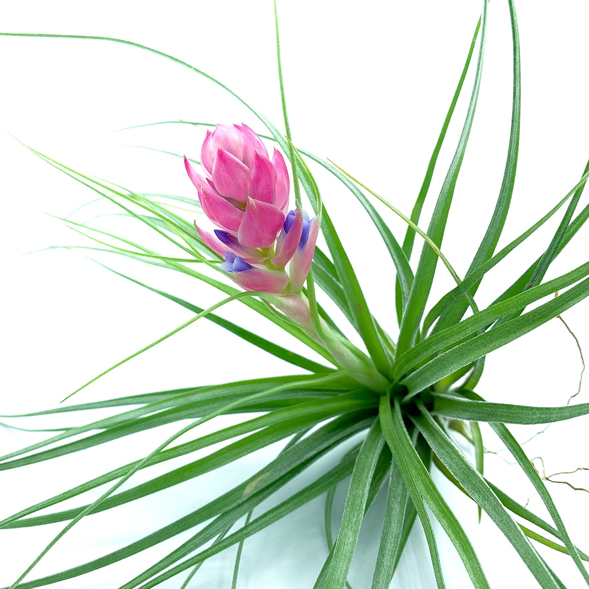 Elegant, Stricta soft-leaf variety air plant is a great collector's Tillandsia. Whimsical, curved leaves and stunning pink / purple flowers make this a unique beauty.