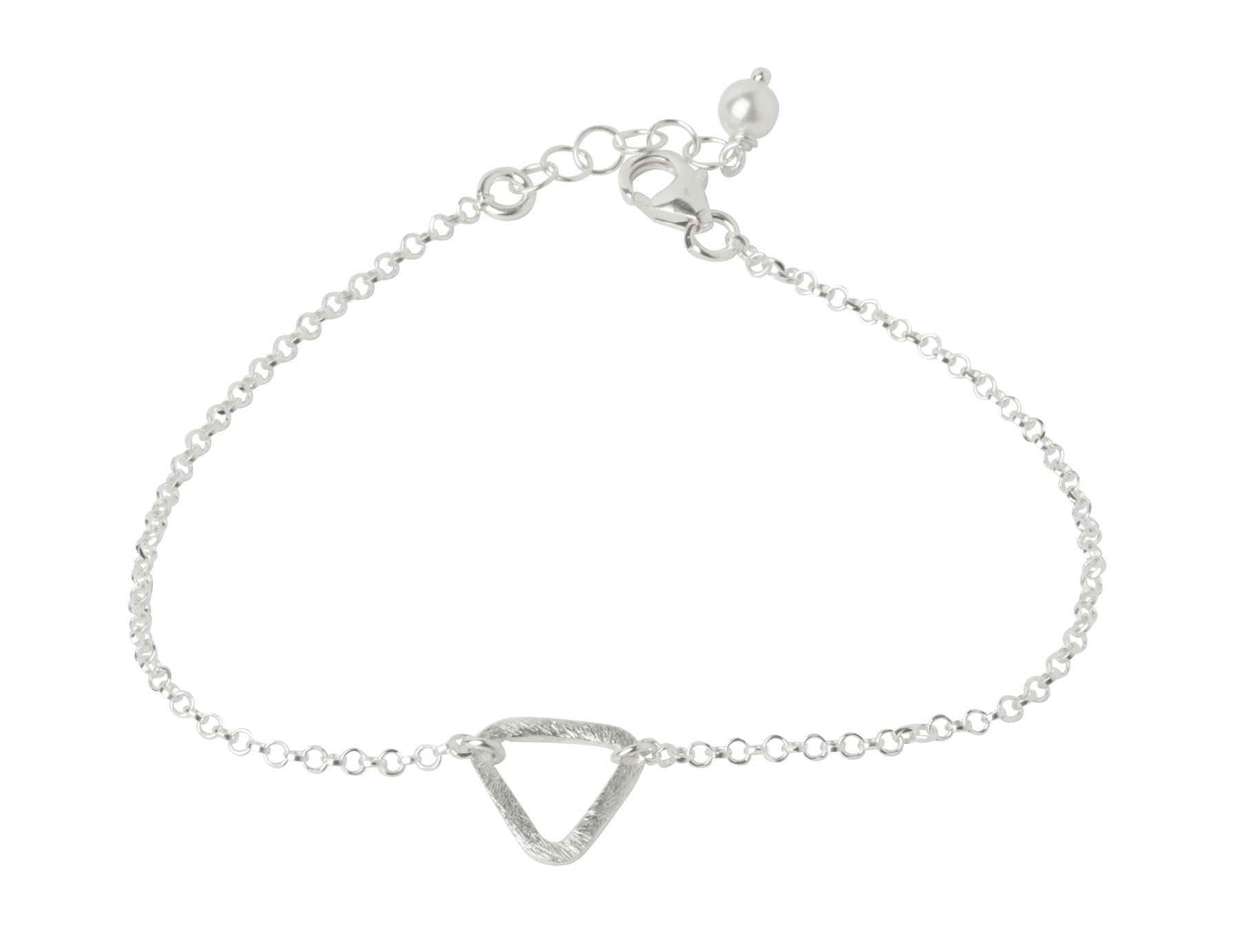 Sterling silver brushed metal triangle chain bracelet. Adjustable 6.5 - 7.5 inches. Triangle is about 1/4" inch in width. Bracelet chains also available in 14kt gold-filled, rose gold-filled, sterling silver (as shown).