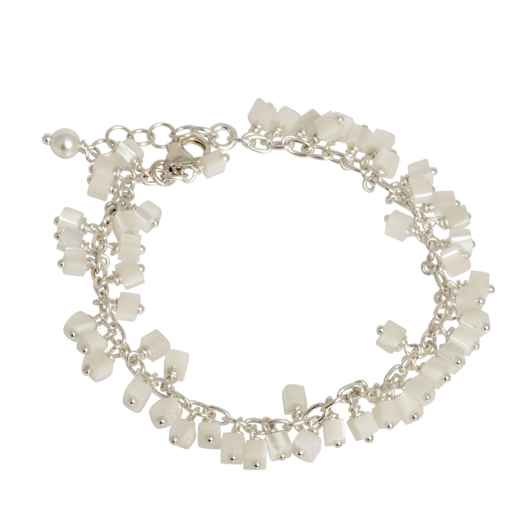 Modern elegance! This white mother of pearl cube charm bracelet is a beauty designed to be enjoyed everyday! Availabl...